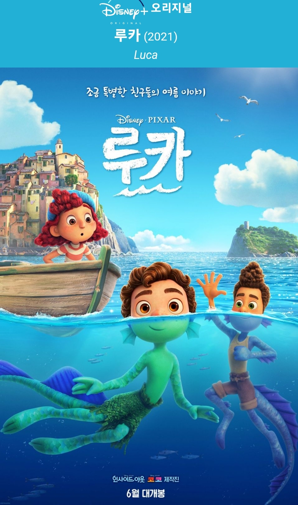 루카의 감독 엔리코 카사로사는 미래소년 코난을 오마주 했다고 밝혔습니다. 제작은 앤드리아 워런이 맡았습니다. 호기심 많은 물고기 루카는 늘 바다 위를 올려다보며 세상을 갈망했습니다. 세상 밖이 늘 궁금하지만 두렵기도 했던 루카는 자신 몸에 물이 닿으면 물고기로 변하는 걸 알고도 세상으로 나왔습니다. 세상에 나올 때는 혼자가 아니고 알베르토라는 한 살 많은 형을 만나 서로의 우정을 쌓았습니다. 알베르토는 루카가 세상에 적응해가는 방법을 하나씩 알려주며 터득해 나가도록 많은 도움을 줍니다. 이렇게 두려움을 뛰어넘을 수 있다는 용기를 주는 내용도 영화 루카에서 시사해 주고 있습니다. 루카의 벗이라고 하는 알베르토는 실존 인물이라고 합니다. 이름도 영화로 그대로 가져와 사용했다고 합니다. 어린 시절 우정을 나눈 알베르토와 추억을 바탕으로 만든 영화입니다. 이탈리아 리비에라의 한 해변 마을을 배경으로 사실적인 묘사로 잊지 못할 여름을 보낸 이야기를 다루었습니다. 잠시 루카와 알베르토의 우정이 흔들리긴 했습니다. 웅장하게 울림이 있는 음악도 영화에 더 집중할 수 있도록 해주었습니다. 아슬아슬한 모험이지만 감동적인 루카 모험 이야기 무더운 날씨에 시원하고 청량감 있고 공감 가득한 메시지와 우정이 돋보이는 픽사 애니메이션 장편영화 루카 재미있게 볼 수 있는 영화입니다.